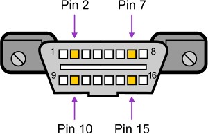 除了引脚2,7,10,和 15,这个插头还必须有引脚 4 (车身地),5 (信号地),和 16。