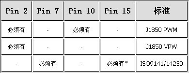 Pin10 ....... ISO 11519-4 (Bus-)(SAE J1850), 和 2号脚同时使用, 41.6 Kbps PWM脉宽调制